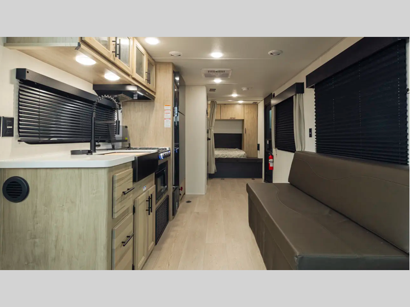 Sleeps 4 Length 29 ft Ext Width 8 ft Ext Height 10 ft 8 in Hitch Weight 897 lbs GVWR 7897 lbs Dry Weight 6009 lbs Cargo Capacity 1888 lbs Fresh Water Capacity 52 gals Grey Water Capacity 38 gals Black Water Capacity 28 gals Available Beds RV King Number of Awnings 1 Garage Size 12 ft 9 in Awning Info 15' Axle Count 2 Shower Type Neo-Angled Similar Floorplans