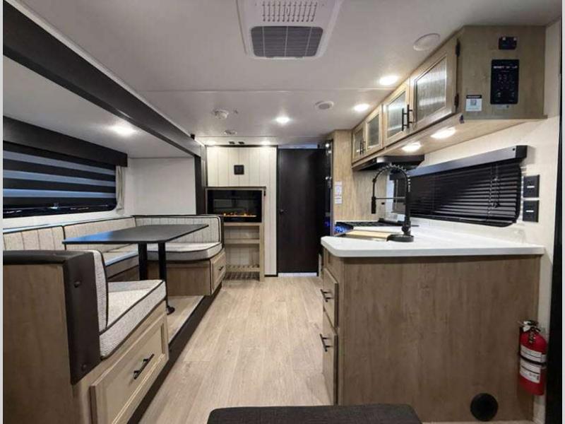 Sleeps 9 Slides 1 Length 23 ft 9 in Ext Width 8 ft Ext Height 10 ft 6 in Int Height 0 ft Hitch Weight 760 lbs GVWR 7760 lbs Dry Weight 6573 lbs Cargo Capacity 1187 lbs Fresh Water Capacity 52 gals Grey Water Capacity 38 gals Black Water Capacity 38 gals Furnace BTU 20000 btu Number Of Bunks 2 Available Beds RV King Refrigerator Type 12V Cooktop Burners 3 Number of Awnings 1 Water Heater Type Tankless AC BTU 15000 btu Cargo Deck Size 0 ft Awning Info 15' Full Length Power w/LED Light Strip Axle Count 2 Shower Type Tub/Shower Combo Solar Wattage 200 watts Similar Floorplans