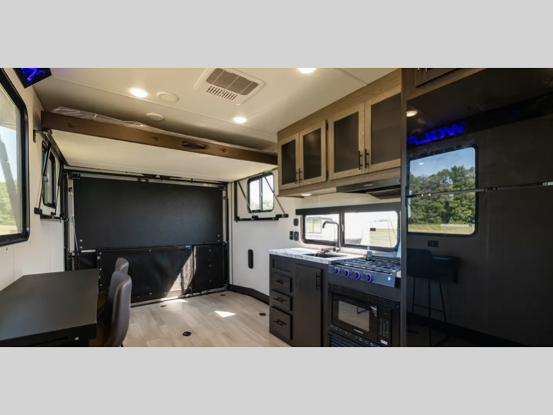 The Cherokee Wolf Pack toy haulers by Forest River are your ticket to fun and adventure. These fifth wheels and travel trailers feature an 8' 6" wide-body design so you can easily bring along the side-by-side, bikes, kayaks, and more!
